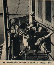 The Batchelder is a 37-year-old Quartermaster harbor boat. "But don't mix us up with the Quartermasters," says Lt. John R. Malone of Lawrence, Kan., the officer in charge of the 32 soldiers who run it. "We're coast artillerymen from the mine-laying service, and we're sick and tired of this water taxicab business. It's like KP for us."