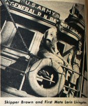 All the soldiers in Brown's crew would be making big money if they were in the Merchant Marine instead of the Coast Artillery. His first mate is S/Sgt. Lorin Livingston of Providence, R.I., and the chief engineer is T/Sgt. Philip Bray of Orland, Me., who's been at sea for 10 years. Sgt. Wilfred Manchester, the assistant engineer, is another old salt from the whaling town of New Bedford, Mass.