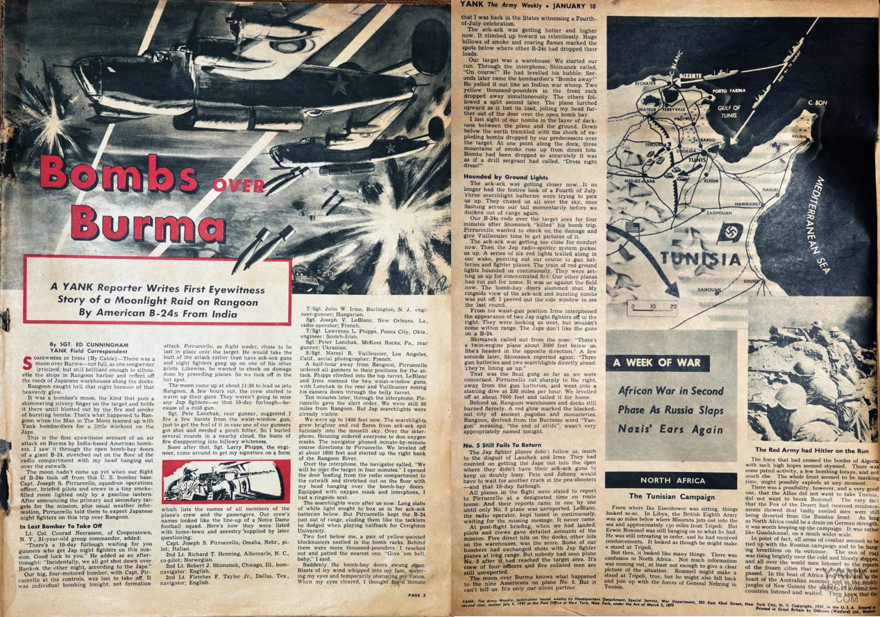 A YANK Reporter Writes First Eyewitness Story of a Moonlight Raid on Rangoon By American B-24s From India